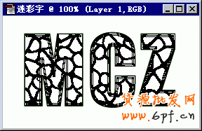 6、單擊文字工具,在彈出的菜單中選擇文字蒙板工具T,在圖象中單擊,在打開的對話框中設置font(字體)為Impact,Size(大?。?0 points,其余的位默認值,輸入字母“MCZ”,并把字母移至圖象中央。