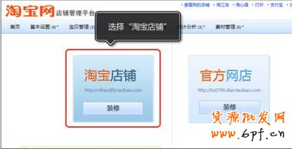 4、選擇“淘寶店鋪