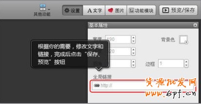 13、進入模板制作頁面后,你可以根據你店鋪的需要修改目標的文字及鏈接,完成后點擊右邊的“預覽、保存”按鈕。