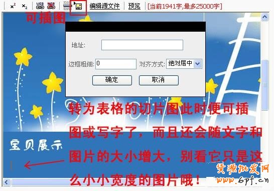 第四,點擊寶貝展示下的切片圖,因為這里要插寶貝細節圖,我們需要把它轉換成表格形式,這樣不管插入的圖片多大,表格都會像一張畫布一樣撐開。如圖操作:
