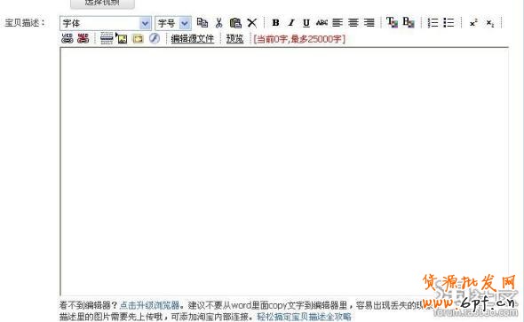 3、清空寶貝描述編輯器里的內容(針對修改寶貝而言,如果是新發布寶貝就不存在清空了)。