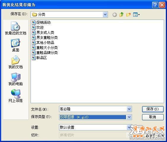 在保存類型中選擇“僅限圖像(*.gif)”,命名之后點擊“保存”近鈕就OK了。