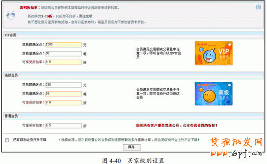 顧客根據不同的交易金額和交易筆數,享受相應的會員優惠折扣,在交易金額和交易筆數里,只要顧客滿足其中一條,就能享受對應的優惠折扣,這也是培養老顧客和增加店鋪吸引力的有效方法。如圖4-40所示。