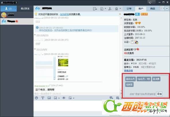 旺旺聊天窗口--客戶中可創建和設置買家標簽。賣家賬號團隊之間自動共享此信息。