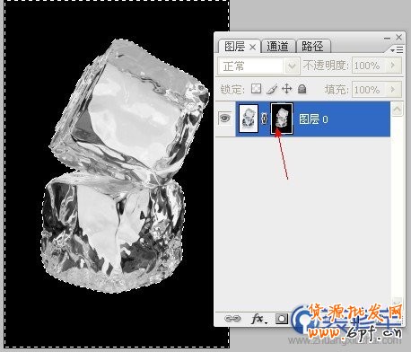 然后在ctrl+v(上面我們Ctrl+V復制過圖層的),把剛才我們復制的圖層粘貼到圖層蒙版中:現在可以看到,圖層蒙版中有了一個和圖層一樣的圖層