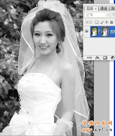 用鋼筆工具在圖層蒙版中扣出人物的路徑: