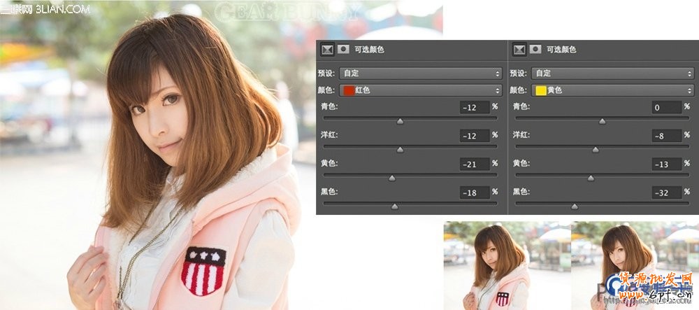 皮膚顏色沒啥特別的話(除了黑皮膚和古銅)基本可以用紅色和黃色控制,如果你打了色片尼瑪你要么就換思路要么就跳河吧。紅色和黃色里的黑色選項減少其實足夠讓皮膚變白,但為了保持皮膚的顏色自然度上面分別的青色洋紅黃色還是需要稍微調整一下的至于主要還是減黑色,減太多就自己看著辦吧。