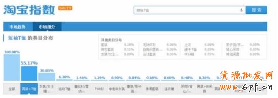 此外,免費的坑位其實也是一個很重要的資源。關鍵詞相關性的查詢最快捷的方式就是從淘寶主搜上查看,將淘寶默認展現的寶貝和你的寶貝進行對比一下就能夠看出淘寶主搜推薦的類目權重,當然也是可以通過數據魔方和淘寶指數來進行權重查詢的,下面利用淘寶指數舉例說明一下,如下圖: