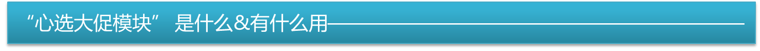 “心選大促模塊”是:當您開啟此大促模塊后,只要您參加了淘寶全網級別的大型促銷活動(如雙12等),系統會直接抓取您參加大促活動的商品信息,在店鋪詳情頁指定區域展現,無須您重復操作。