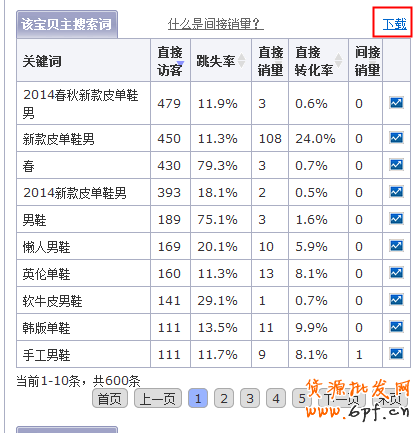 然后看該寶貝主搜索詞,最近一段時間的數據,把數據下載下來。