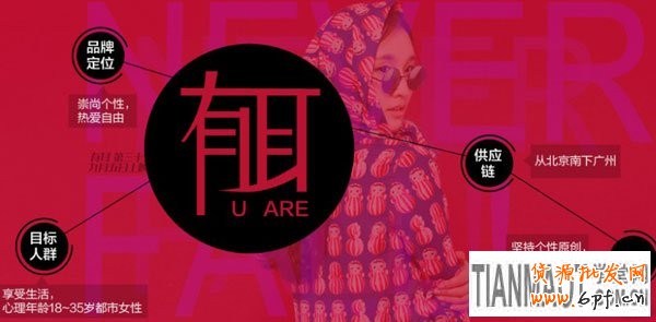 在定位上,有耳定位于素尚個性.熱愛自由,享受生活的都市知識女性,心理年齡在,8-35歲之間。并從這個群體的生活樣態為依據進行開發設計。每一季的產品都圍繞一個主題展開,或具象或抽象,使每一季的產品呈現出統一的氣氛,讓買家感受衣服的故事感和過程性。比如,宣傳海報以普通女孩的生活狀態為場.,或發呆,或徽笑,或大笑.在安崢輕松的畫面色調里,提供豐畜的原創藕神空間,令人不自覺想放松,想放慢腳步.體味有意思的生活味道。