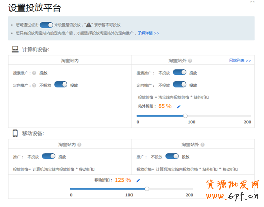 首先,我們要看淘寶直通車的流量引進情況以及轉化情況,在淘寶直通車的報表里面可看到站內、站外、關鍵詞、定向、PC端以及手機端分別引入的流量情況,然后根據轉化情況針對性的在投放平臺里面打出對應的折扣,轉化情況好的折扣向上調整,轉化情況不理想的則往下調整,一般調整的幅度在5%左右。