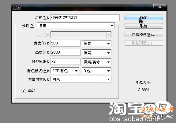 名稱改成寶貝名稱,方便日后管理,因為之前縮放的寬度是400所以這里的寬度選擇500,高度還要根據圖片的多少計算下~~~點擊確定