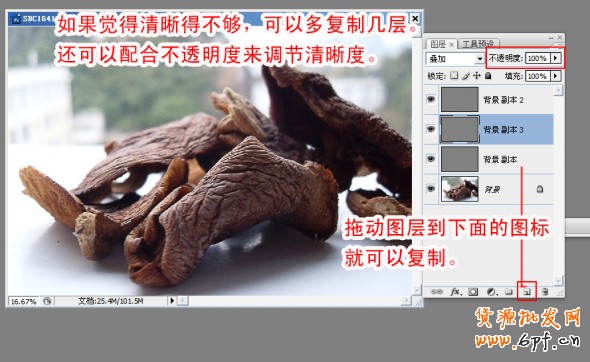 6、如果覺得銳化不夠,復制該圖層一次或二次,以加強圖像銳化度。