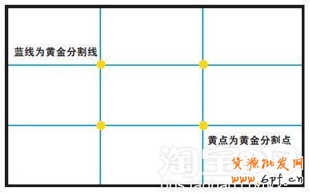 藍色的細線是在PS里的參考線!你可以再PS里把您的圖片寬和高平均分成三塊!記的一點要平均!而分開他們的2條參考線就是所謂的參考線!而他們的交叉點就是黃金分割點!大家要記的你拍人物照和作圖的時候突出點一定要放在黃金分割點上。當然不能全部都放。