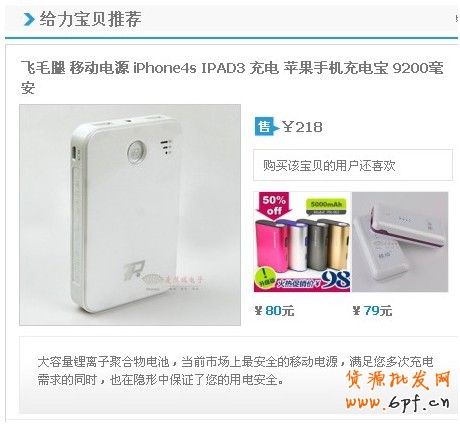 賣家提到說店鋪中寶貝的利潤空間很小,不能做很多打折優惠的活動。實際上店鋪中不僅有主營的寶貝——內存,還有其他一些利潤空間比較大的寶貝,如蘋果周邊產品、移動電源等。營銷時需要對店鋪中的寶貝有一個合理分層,哪些寶貝是用來低價引流量的,哪些寶貝是用來提升盈利的,只有合理搭配,才能創造更多的財富。比如下面的寶貝推薦,就可以將移動電源盒旁邊的兩款產品進行一個搭配銷售,并配有一定的優惠。