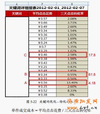 關鍵詞優化的依據主要是關鍵詞的點擊率、關鍵詞轉化率和關鍵詞ROI(Return OnInvestment,投資回報率),這些指標直接影響這個關鍵詞對直通車推廣的有效性,其中關鍵詞ROI體現的是直通車推廣的直接效果,也就是說通過這個詞的推廣帶來的直接利潤。如圖5-20所示。