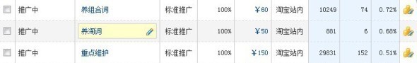 每三天為一個周期對第一計劃和第二計劃進行關鍵詞的篩選和培養,對第三個計劃中,最有價值的幾個詞做好每天都進行優化調整的工作。這樣就可以科學合理地減少工作量,能讓自己的推廣費用做到有效利用。通過不斷的篩選和優化,將有可能找到出價很低,但是轉化率很高的詞。