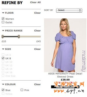 在每個子導航項后面,以括號()的形式顯示符合條件的結果數量,也是不錯的做法。這一點值得學習的是ASOS.com,通過衣服幾個屬性的同時過濾篩選,通過AJAX技術異步,無須刷新既可加載展示符合條件的衣服。