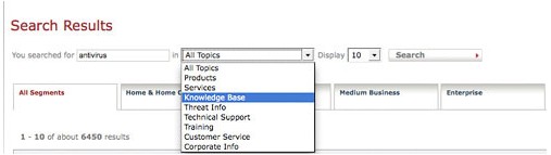 怎樣展示產品列表,對點擊次數有巨大影響。每個鏈接展示越多相關信息,客戶就越好判斷哪個產品是他想查看的。見過最差的搜索展示莫過于下面這種,一個大型軟件企業網站,整站(即使你只搜索產品)采用標準的Google式展示方式,哪些是產品信息,哪些是文檔信息毫無界限。這種方式著實讓人傷不起,是我們學習的反面教材。