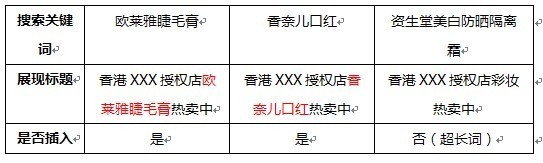 假如買家搜索關鍵詞:香奈兒口紅, 那么該標題展現時候會自動變為: 香港XXX授權店香奈兒口紅熱賣中。