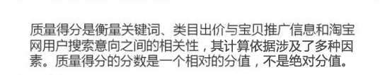 因此,質量得分是關鍵詞的搜索匹配相關度的綜合指數,當買家搜索關鍵詞時,匹配相關度越高的寶貝質量得分越高,反之則越低。在關鍵詞出價相同的情況下,質量得分越高,排名越靠前。推廣展示費用越低。