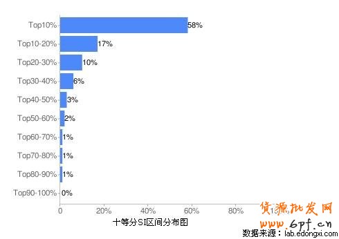 該店鋪SI排名前10%的單品所占SI的比重為58.10%
