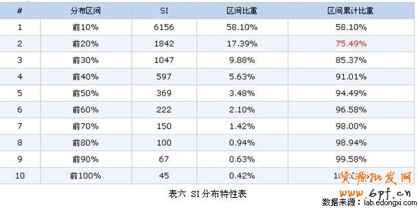 從下表能夠看出該店鋪在單品運營方面是否主次分明。 如果該店鋪店鋪SI排名前20%的單品對該店鋪店鋪SI貢獻超過80%(下表紅色的部分),則我們認為該店鋪單品運營體現了主次分明的原則。