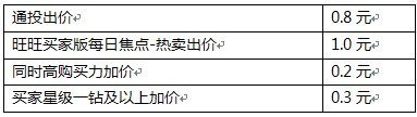 在旺旺買家版每日焦點-熱賣位置,以獨立位置出價1.0元作為基礎出價,