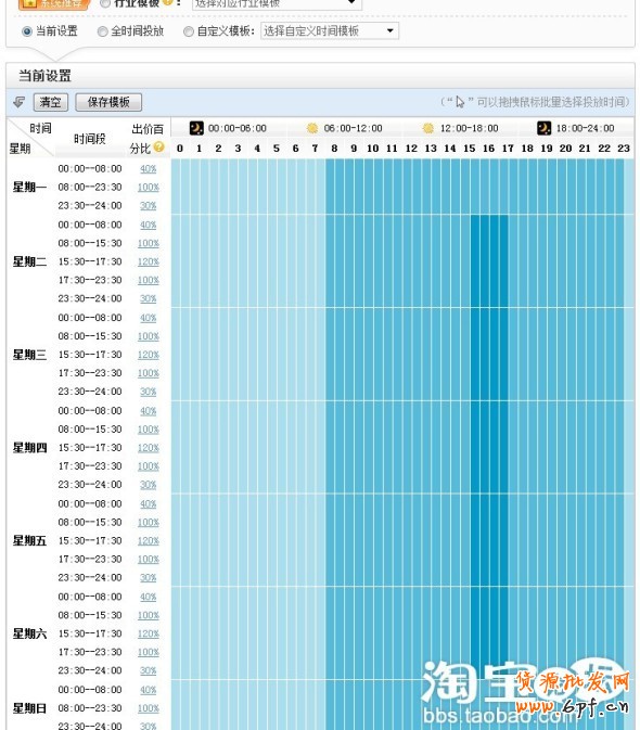 常用方法是,增加高峰時間段的時間投放百分比。流量高的時候可以設置折扣120%-150%左右。