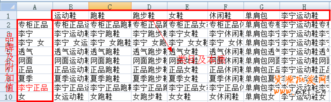 從下圖excel表格的操作圖可以看到,李寧正品女鞋/李寧運動鞋/李寧跑鞋這三個關鍵詞被概況到了,如果單純運用自建excel的方式添加關鍵詞可以占到點擊量的72%.