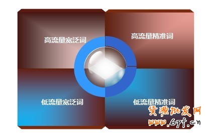 寬泛詞與精準詞都有高流量與低流量之分,流量影響因素,是否當前流行,是否該商品旺季等等。加入流量因素后,將關鍵詞又分為如下四類: