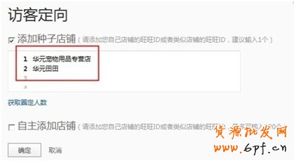掌柜經過反復測試,覺得相對自己店鋪而言訪客定向效果最優,種子店鋪做的是自己兩家店,讓老客戶能看到自己的廣告。在新客戶方面,掌柜用了自主添加店鋪: