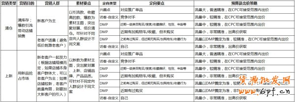 這里以清倉和上新不同的營銷目的來說明定向和競價策略。