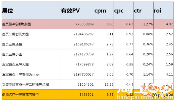 最后,列出4月重要展位的整體投放數據,各位掌柜根據自己推廣內容、品牌和預算選擇合適展位,對應做出計劃。