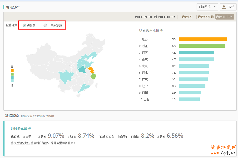 可通過生意參謀中的訪客分析,找出流量高和轉化率高的地區,并且在這些地區中加大投放力度,實現更加精準投放,使得推廣效果更佳。