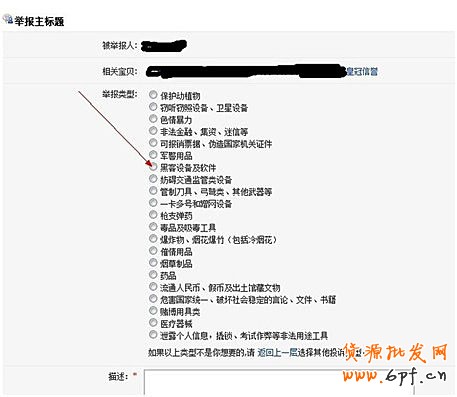 點擊舉報后進入后,會進入到下圖顯示的頁面: