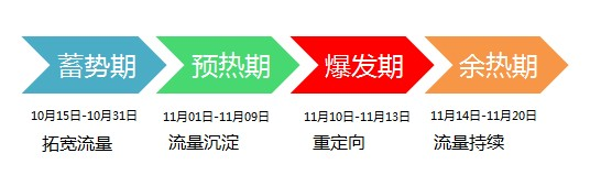 雙十一當天的爆發,需要在活動前期的蓄勢、預熱期圈定盡可能多的買家,將買家的池子圈得盡可能大,以在雙十一爆發期有更多的可重定向人群;且蓄勢期的CPM成本較低。