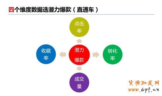 一般看某款寶貝是否有潛力,可以從點擊率、轉化率、收藏量和成交量四個維度的數據進行綜合考量。這些數據可以從店鋪目前進行的直通車推廣中得到。