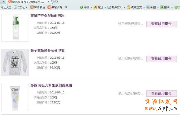 量的東西來申請,對于初涉試用中心的人來說,試用量多的試用機會也會大,如果你試用過很多東西,那你可以憑借著以往公正客觀的試用報告去申請那些30份,20份.10份,甚至1份的試用。因為你有試用過了,商家和小二對你信任度就增加了!
