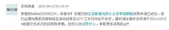 二、希望商家要把試用發貨后的訂單及時公布,雖然有些商家有公布,但有些商家還是沒有公布的!這點希望可以確保,這樣既可以讓試用者放心,也可以更有力的證明試用不是浮云啊,經常聽到有人說試用品收不到,這不知道是商家的原因還是試用者的原因,所以希望有個這樣的要求,把訂單號及時的公布出來!