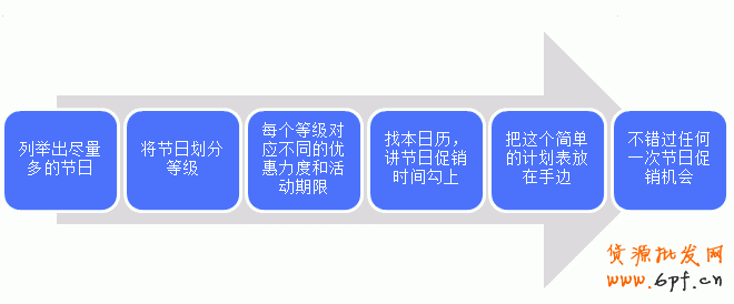根據節日促銷計劃,找一本日歷,將節日計劃的日期圈上,有效提醒自己不錯過任何一次促銷理由。