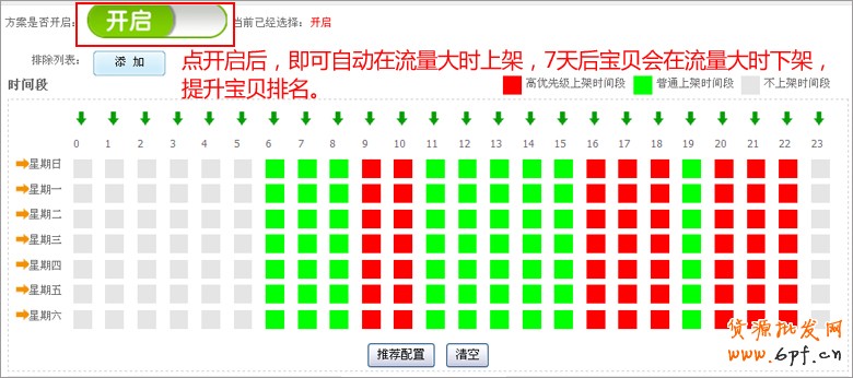寶貝流量大的時段,會隨著季節時間的變化,無法時刻監控,于是我又找了工具幫忙,幫我定時上架,它讓我的寶貝在系統配置好的時間內,錯開上架時間,在最合理的時間上架寶貝。如下圖: