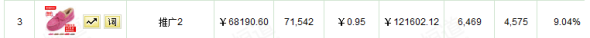 再次經過一個禮拜的試推廣之后,再從全店計劃(即推廣4)中挑選各項綜合數據較好的寶貝加入進行試推廣。