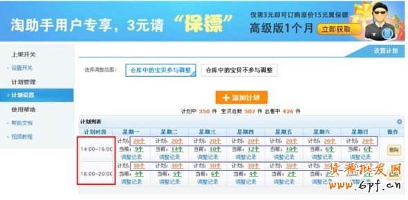 以下是根據量子統計時段流量分析設置的寶貝上架計劃