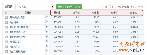 搜索結果,總共有5頁,共計1733條匹配詞記錄??纯词遣皇嵌寂c寶貝相關度極高啊。這一簡單操作,免除了你頻繁去用excel表,篩選關鍵詞,而且是否與該寶貝匹配吻合,則又是很大一個問題。用這個工具網站,就這么簡單操作。