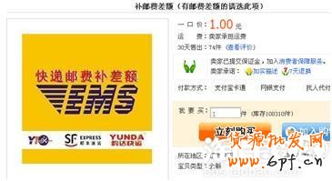 1 郵費商品:商品的運費單獨作為商品發布或者補郵費差額的商品