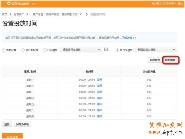 列表視圖:把時間按列表的形式排列下來,點擊展開可對每半小時單位進行出價百分比的修改