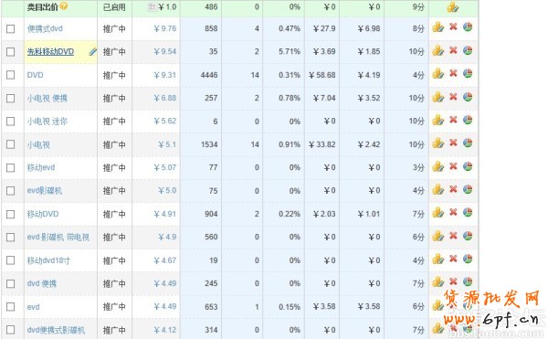 這個是直通車推廣里面一個計劃表格,首先,我們先分析,這個點擊率是好還是不好,怎么分析呢?那就是用流量解析,分析一下,大家所在的類目平均點擊是多少,先看下自己店鋪寶貝中匹配的類目是什么?這個是實踐中的操作那我們就先按這個類目來做分析:類目:影音電器>隨身聽/便攜視聽/收音>移動/便攜DVD。