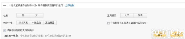 我們在淘寶首頁,隨便搜索一個關鍵詞。發現有這個提示。這就是系統現在默認是給我開啟了個性化搜索的。所以,現階段個性化是非常重要的。你不了解它,就OUT了。